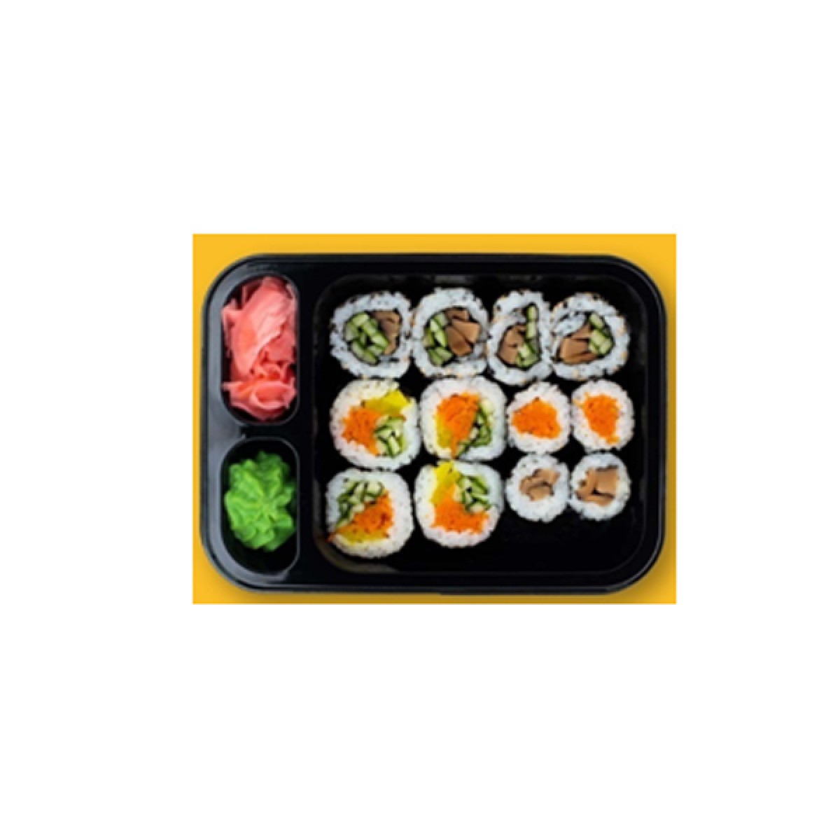 Egészségedre szállítjuk!Delivered to your health!Veggie Combo - 4x Futomaki Veggie 4x Uramaki Veggie, 2x Maki Shitake, 2x Maki Carrot 230g